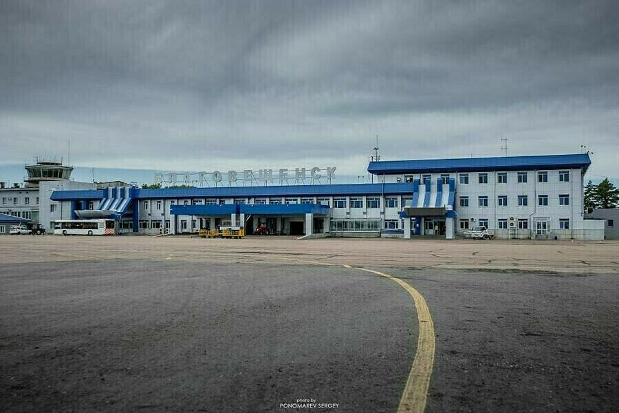 Фото: международный аэропорт Благовещенск Жители Благовещенска столкнулись с тем, что цена за авиабилет в одну сторону до столицы страны преодолела отметку в 20 тысяч рублей.