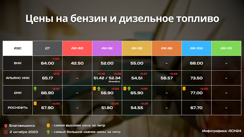 Автолюбители Благовещенска вновь заметили подорожание стоимости литра топлива на заправках города. АСН24 выяснила, насколько подорожали бензин и дизельное топливо к началу октября.