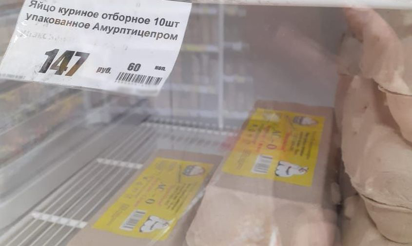 По официальным данным Амурстата, в среднем по области с начала августа куриные яйца подорожали на 25 % — со 102 рублей 24 копеек до 127 рублей 83 копеек на конец октября.