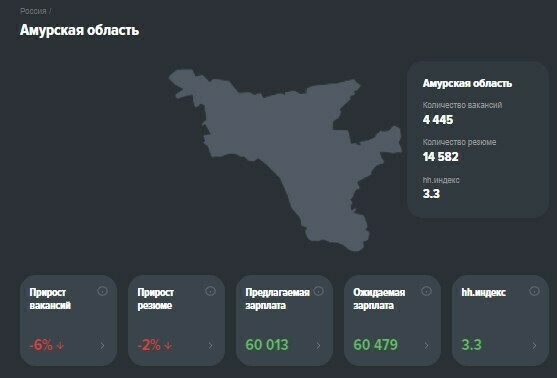 В целом за год резюме на hh.ru от амурчан стало меньше на 2%, а резюме - на 6%. По данным портала, легче найти работу на Дальнем Востоке в ЕАО, Приморье и Хабаровском крае.