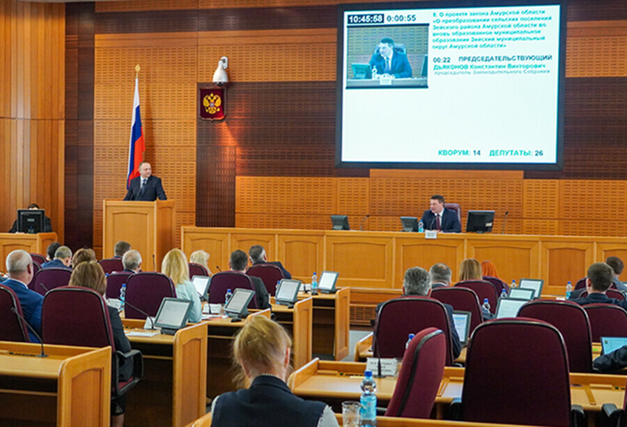 Фото: amurobl.ru Амурские парламентарии на 15-м заседании законодательного собрания в первом чтении приняли законопроект о преобразовании сельских поселений Зейского района в муниципальный округ.