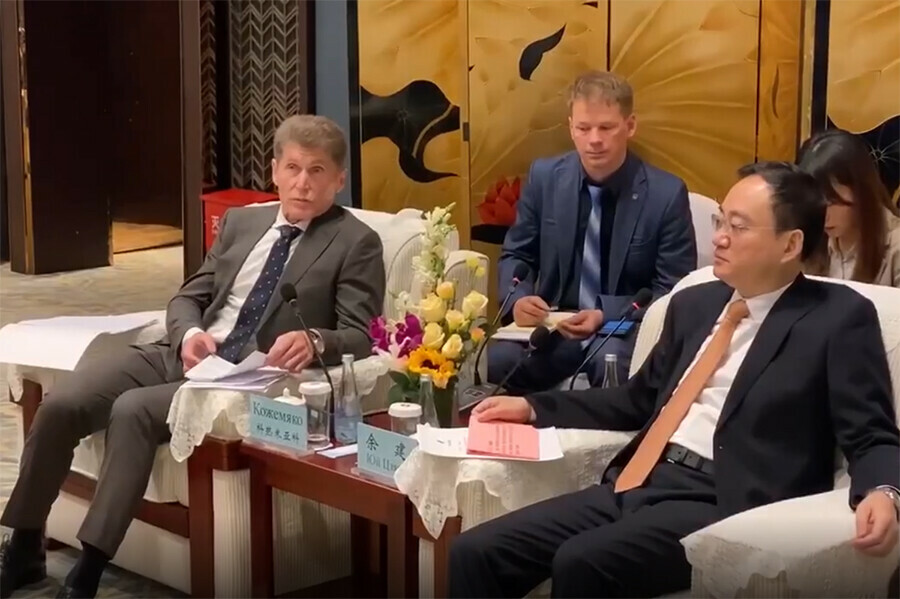 Фото: скриншот видео 26 марта губернатор Приморского края Олег Кожемяко побывал в Харбине, где встретился с вице-губернатором провинции Хэйлунцзян Юй Цзянем.