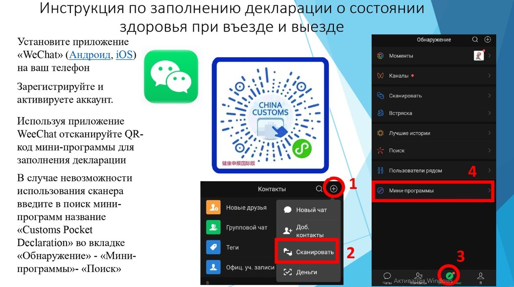 К лицам, въезжающим в КНР, будут предъявляться противоэпидемиологические требования. Так, получить разрешение на въезд можно только после прохождения ПЦР-теста на COVID. Сделать это необходимо не позднее 48 часов до въезда в страну. Результаты теста нужно вносить в специальный «Паспорт здоровья» в мобильном приложении We-Chat.
