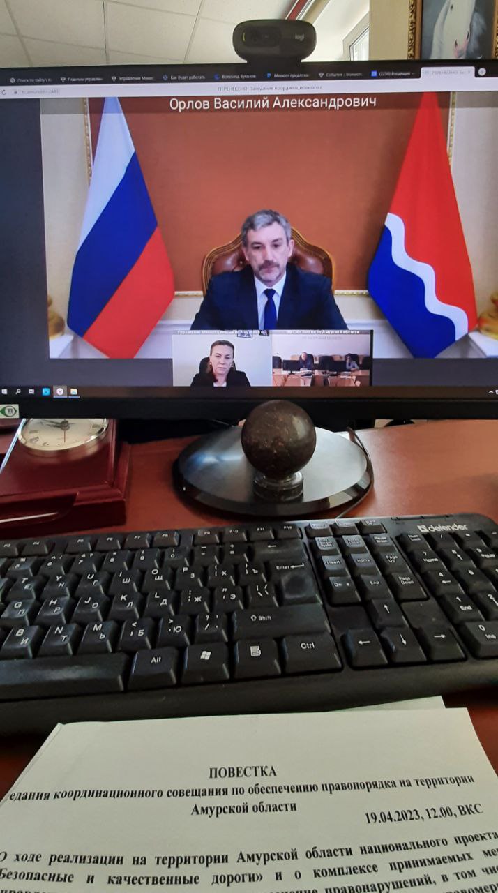 19 апреля 2023г. начальником Управления Минюста России по Амурской области Т.Б. Лазаренко принято участие в очередном плановом заседании Координационного совещания по обеспечению правопорядка на территории Амурской области, проведенном в режиме видеоконференции под председательством губернатора области В.А. Орлова.