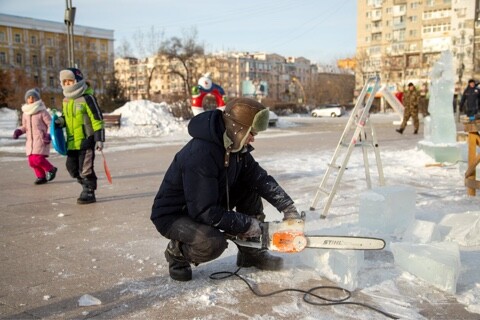 Фото: admblag.ru Фигуры изо льда украсили площадь возле Общественно-культурного центра в Благовещенске.