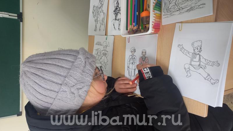 Площадка отдела краеведения и редких книг была посвящена амурским казакам – первым защитникам Приамурья, и включала в себя игры, пазлы и раскраски.