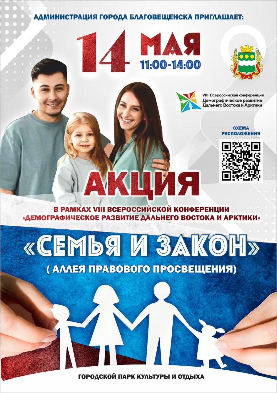 Приглашаем принять участие в акции “Семья и Закон” , которая состоится 14 мая (с 11:00 до 14:00) в Городском парке культуры и отдыха. Акция состоится в рамках VIII Всероссийской конференции “Демографическое развитие Дальнего Востока и Арктики”