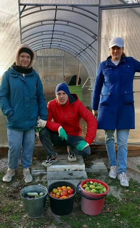 Благовещенцы с ОВЗ собрали последний урожай из теплицы