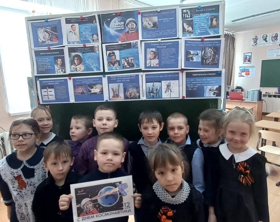 В фойе образовательного учреждения разместили информационные стенды «Первый полет в космос!», «Он сказал – Поехали!», «Из истории Дня космонавтики» и литературу, посвященную данной тематике. «Покорители космоса!» - под таким называнием для обучающихся начальной школы провели цикл познавательных бесед. Дети с большим интересом слушали рассказы о первом космонавте Юрии Гагарине, о собаках Белке и Стрелке, которым удалось до человека побывать в космосе, узнали много интересного об ученых, стоявших у истоков развития космонавтики, о планетах Солнечной системы и космических полетах.
