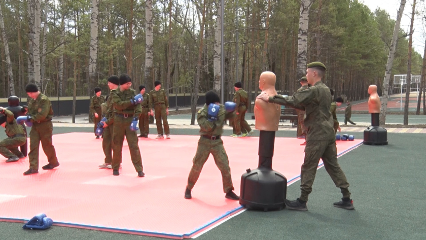 «У нас площадка по дисциплине «Основы рукопашного боя». То есть прививаем кадетам какие-то первоначальные навыки, которые им придется получать в военном училище. То упражнение, которое курсанты выполняют на зачете, выполняют в обычный повседневный день, на спортивно-массовой работе, на занятиях», — рассказывает инструктор Батор Цыреннамдаков.