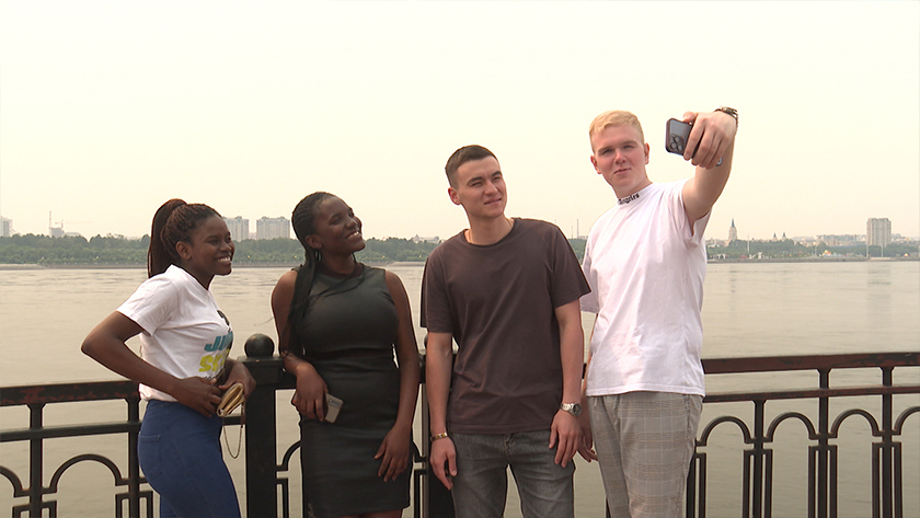 Старшекурсники Амурской медакадемии проводят экскурсию по Благовещенску для новичков из Африки. Бевали Мубвумба приехала в Россию из Хараре, столицы Зимбабве, где полтора миллиона жителей. Будет учиться на педиатра. Уверяет, от города, в котором проведет ближайшие 6 лет, в восторге.