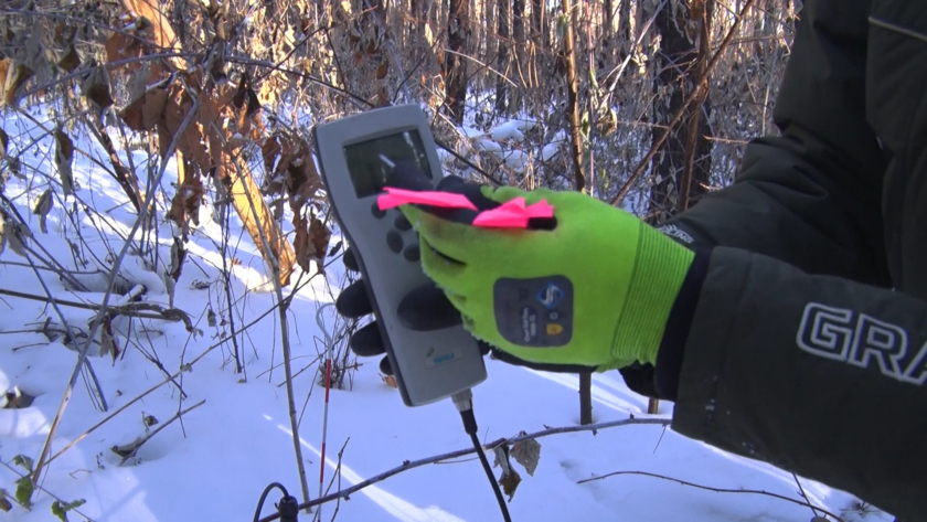 Для этого в разных местах на поверхности установили пластиковые камеры. Углекислый газ оказывается внутри. Его концентрацию измеряют специальным прибором. Вредный в больших количествах СО2 в лесу даже при экстремально низких температурах вырабатывают грибы и микроорганизмы.