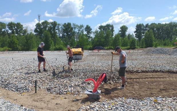 Территорию для будущего мини-стадиона уже отсыпали щебнем. Площадку готовят к бетонированию.