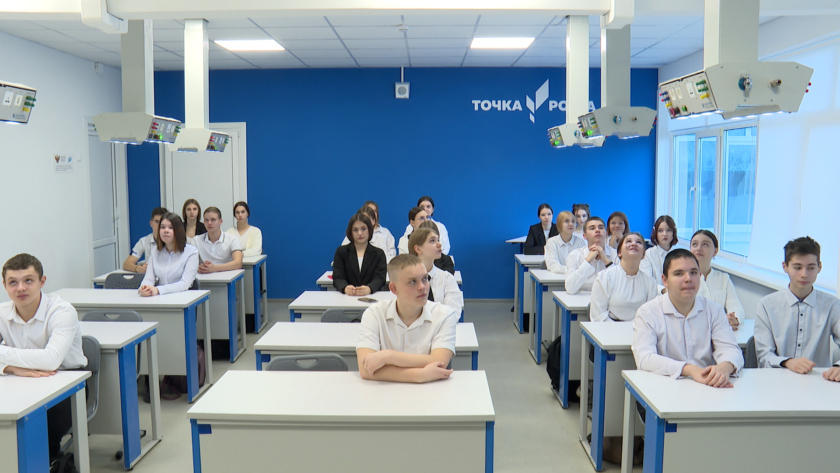 В обновленном учреждении открылся центр «Точка роста» естественно-научной направленности, где есть специализированные лаборатории по химии, физике, а также кабинет проектной деятельности, где ребята могут заняться робототехникой, шахматами, исследовательской работой.