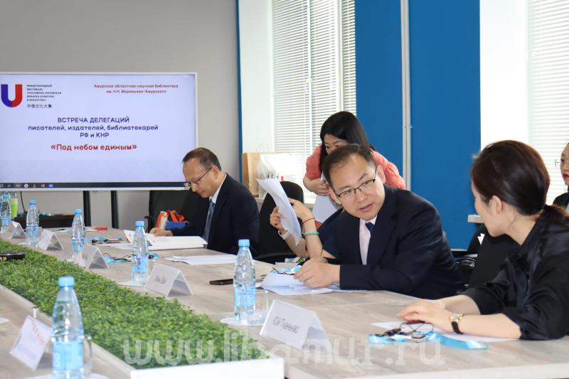 29 июня в 11:00 в рамках XIV Международного фестиваля «Российско-китайская ярмарка культуры и искусства» в Амурской областной научной библиотеке им. Н.Н. Муравьева-Амурского состоялась встреча делегаций писателей, издателей и библиотекарей РФ и КНР «Под небом единым». Российскую делегацию возглавила Н.А. Доргунова, министр культуры и национальной политики Амурской области.