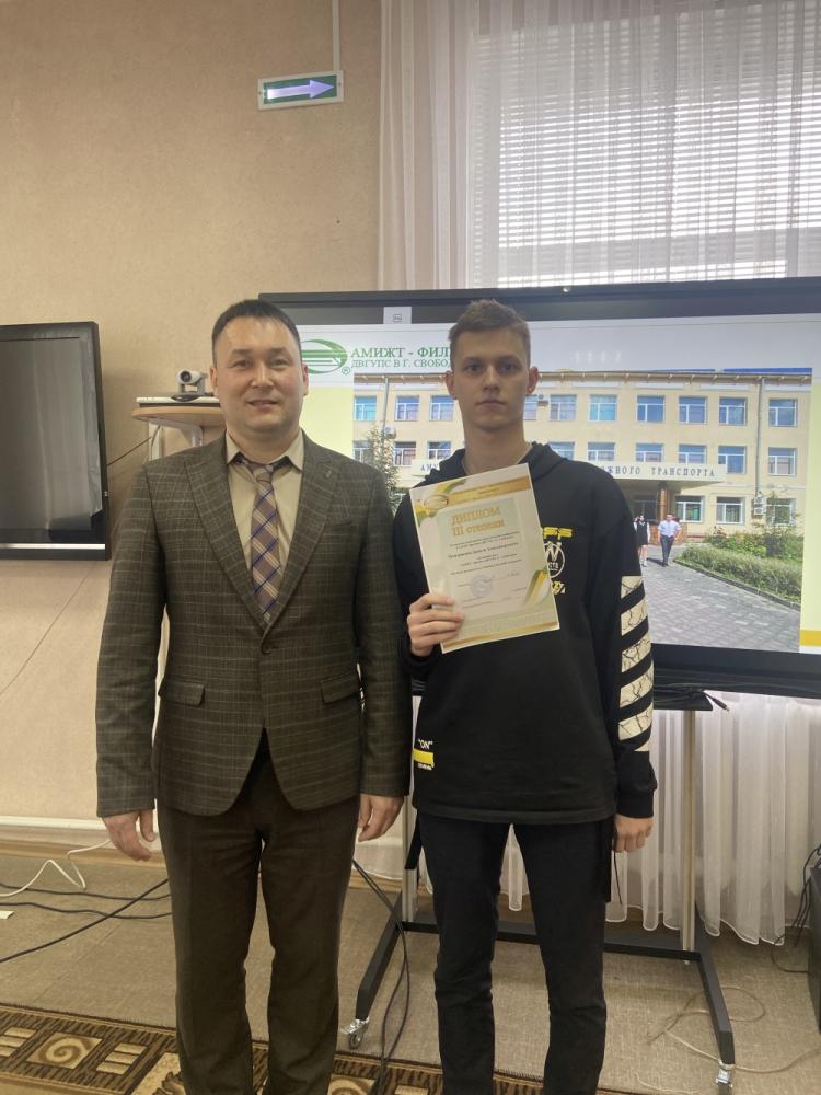 Диплом III степени - Бодягин Павел, Заляев Владислав, Мещеряков Данил, студенты АмИЖТ – филиал ДВГУПС в г. Свободном, Сергеева Ксения, обучающаяся МОАУ СОШ № 192 г. Свободный, Крячкова Анастасия, Лаптев Максим, обучающиеся МОАУ СОШ № 3 г. Шимановска.