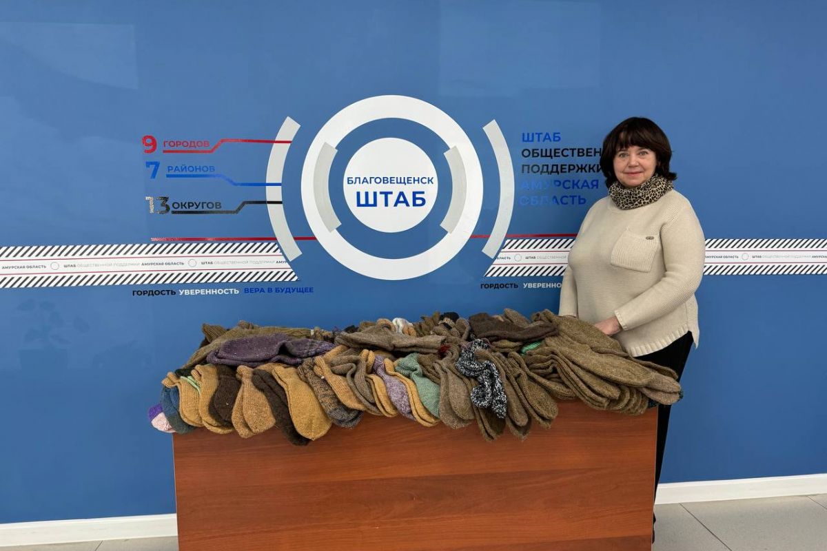 В Штаб общественной поддержки Амурской области передали сладости и теплые вещи, которые с любовью и заботой собрали неравнодушные жители города. Так, мастерицы органа общественной самодеятельности «Центральный» связали больше сотни пар носков, а активистки ООС «Кузнечный» купили несколько коробок сладостей.
