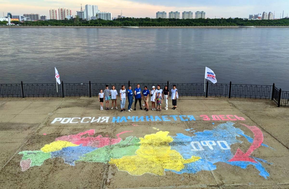 Волонтеры регионального штаба «Молодой Гвардии Единой России» не остались в стороне и присоединились к Всероссийской акции «Россия начинается здесь». На набережной города вместе с благовещенцами они создали и раскрасили карту России.
