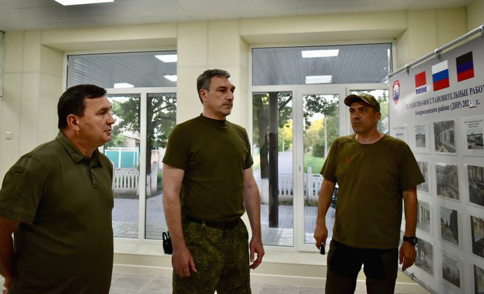 Глава Амурской области во время командировки в подшефный Амвросиевский район ДНР, осмотрел ремонт двух школ и работы в будущем современном многофункциональном центре.