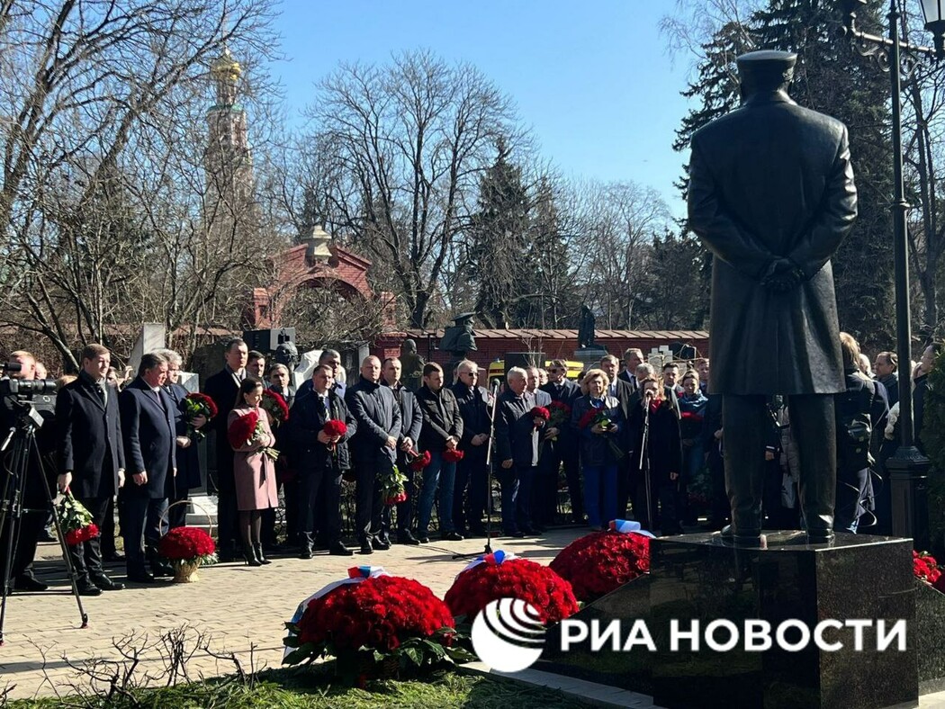 Фото: телеграм-канал РИА Новости Памятник основателю ЛДПР Владимиру Жириновскому открыли на Новодевичьем кладбище в Москве в годовщину его смерти.
