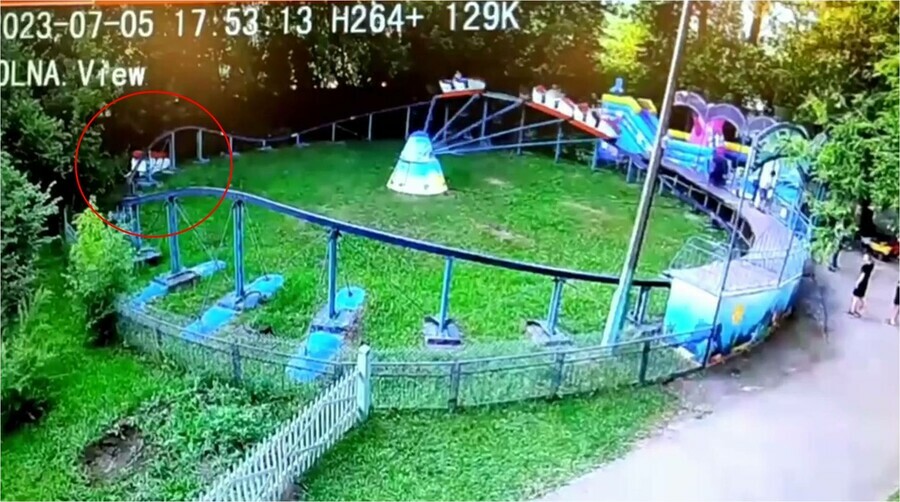 Фото: скриншот видео В Подмосковье с детского аттракциона слетела кабинка.