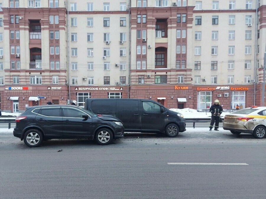 Пока шли дорожные разборки, в стоящие авто врезался ещё один автомобиль, сообщает телеграм-канал «Осторожно, Москва».