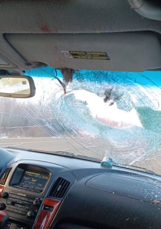 Жесткое ДТП с участием фазана произошло на трассе Благовещенск - Свободный. Фотографии очевидца из автомобиля, который пострадал в ходе инцидента, опубликовал Telegram-канал "SVB NEWS". Судя по кадрам, дикая птица врезалась в лобовое стекло и разбила его. Салон авто остался в следах крови.