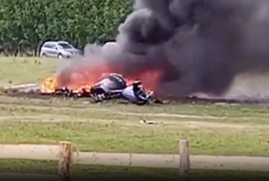По данным МЧС, трагедия произошла, когда вертолет заходил на посадку. По кадрам видео, снятыми очевидцами, вертолет летит над полем и готовится сесть. Издалека его снимают жители ближайших домов и турбаз – судно держится в воздухе прямо, снижается равномерно. Вот борт уже почти у земли, аккуратно пролетает рядом со столбами линии электропередачи, выбирает место для остановки. Почти касается земли – и вдруг хвостом буквально сносит столб с проводами. Провода падают на крышу – машина вспыхивает в минуты, рассказывает «Комсомольская правда Барнаул» .