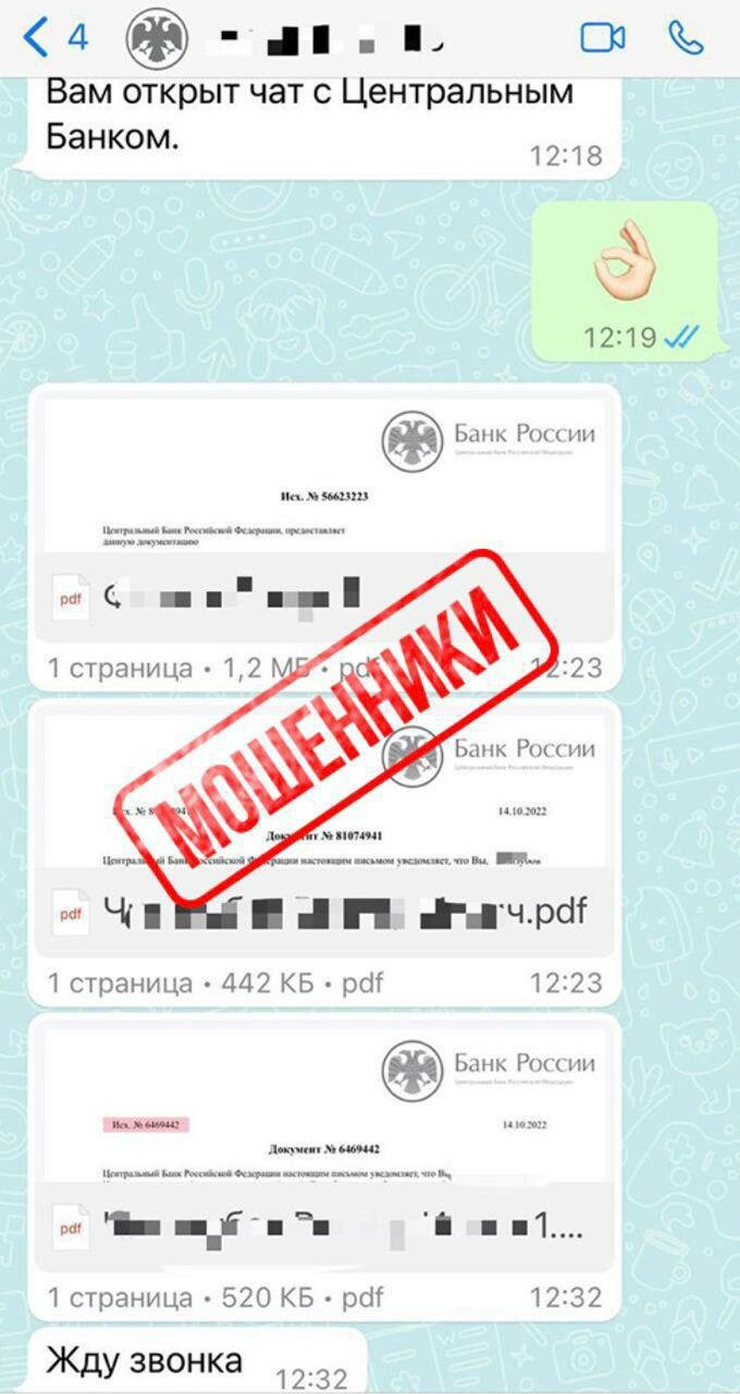 При этом злоумышленники общаются с помощью мессенджеров, устанавливая на фото профиля логотипы банков, а для убедительности присылают фотографии поддельных удостоверений либо банковских документов.