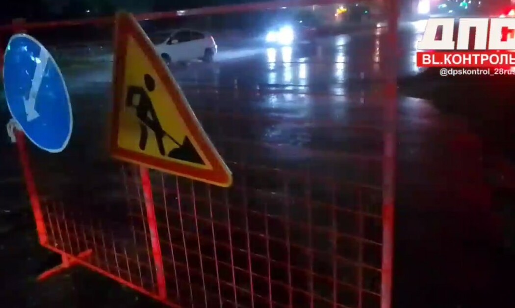 «Осторожно, по Институтской при повороте на Дьяченко обвалилась дорога. Первой полосы нет. Дорожные знаки подняли, поставили», - рассказал один водитель в телеграм-канале @dpskontrol_28rus .