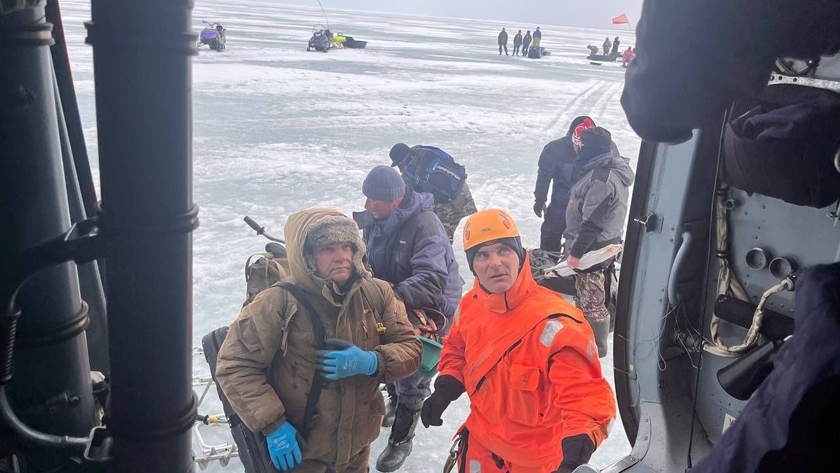 Спасатели вертолетом эвакуировали с оторвавшейся льдины 45 человек.