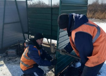 В Благовещенске сотрудники ГСТК не дали «улететь» остановочному павильону. Как сообщал Порт Амур, он упал, возможно, из-за ветра.