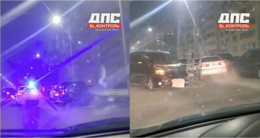 Фото: dpskontrol_28rus Вечером 31 января в районе Тайвань Благовещенска случилось массовое ДТП.