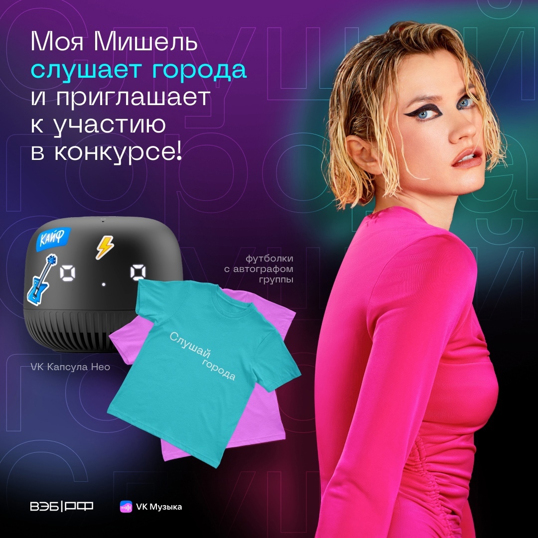 ВЭБ.РФ и VK Музыка запускают проект «Слушай города». Город, собравший больше всего упоминаний с репостами, получит приз от группы Моя Мишель.