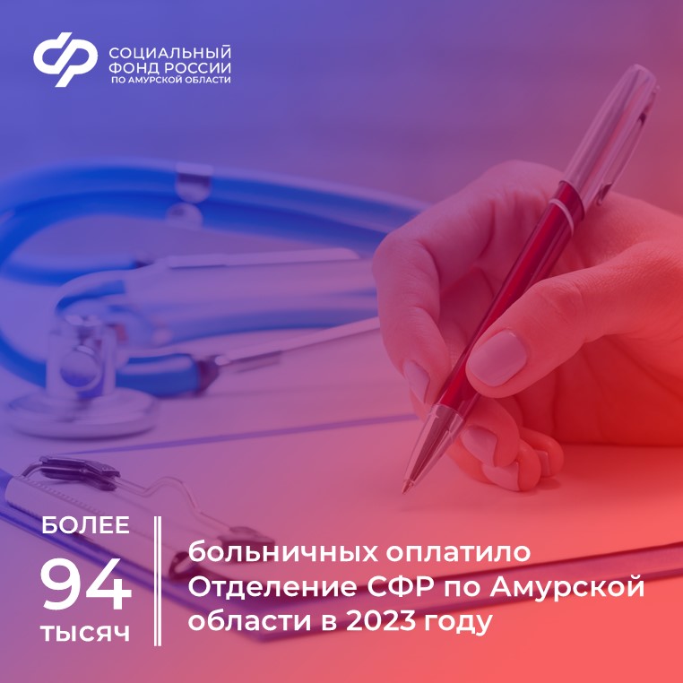 В 2023 году амурское Отделение Социального фонда России оплатило свыше 94 тысяч листков нетрудоспособности на сумму более 1 миллиарда рублей.