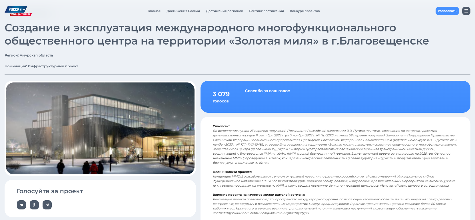 Будущий благовещенский международный многофункциональный общественный центр может стать всероссийским победителем