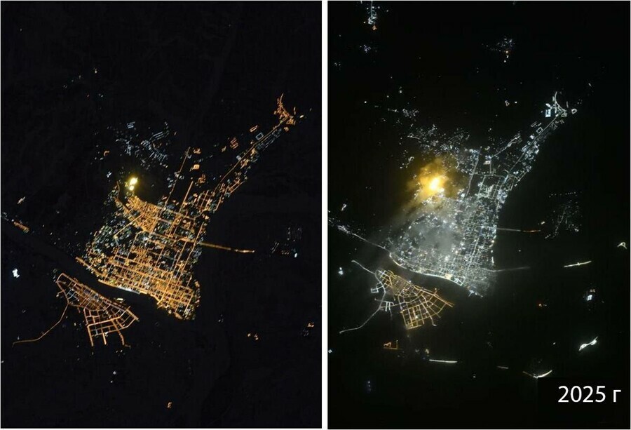Фото: t.me/OrlovAmur Благовещенск прирос новыми районами и засветился. Об это говорят сравнительные фотографии из космоса, сделанные в 2018 и 2025 годах.