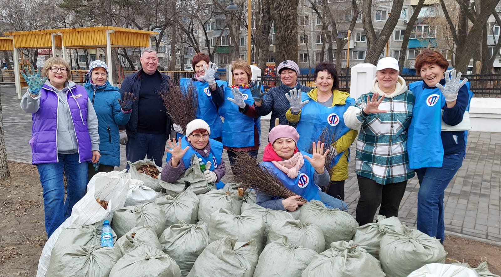 Всего на уборку вышло около 30 человек, в процессе к ним присоединились гуляющие в сквере дети и их родители. Совместными усилиями было собрано 35 мешков мусора, крупные ветки и прошлогодняя листва. А ребята за свой труд получили сладкие подарки.