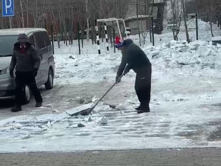 Депутаты городской Думы помогают очищать территории домов и спортивных объектов от снежного наката