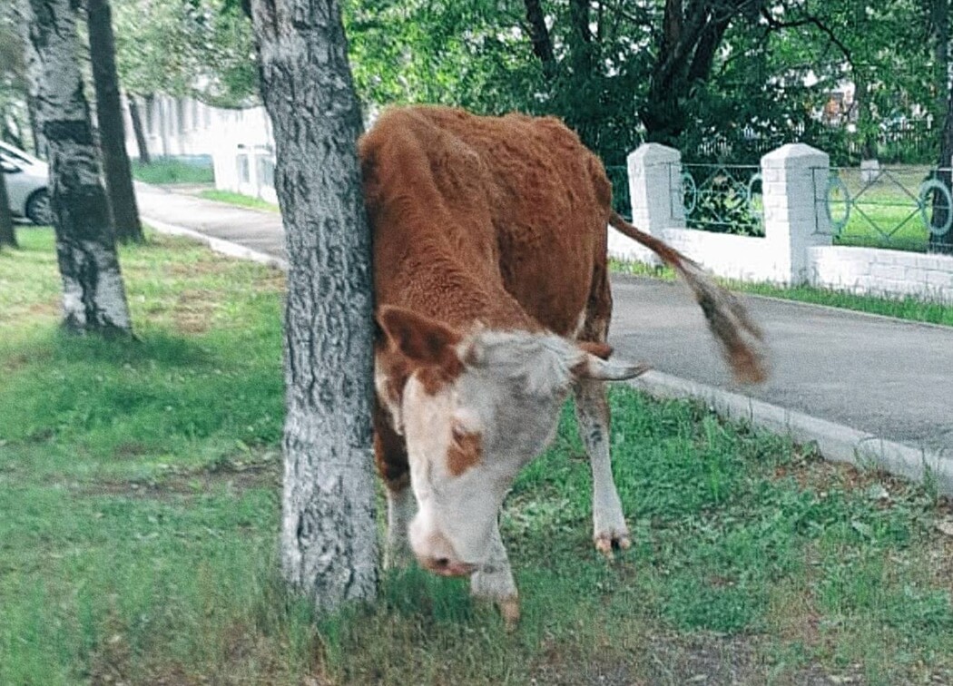 Фото: Telegram-канал Дмитрия Лебедева Глава Шимановска Дмитрий Лебедев в своем Telegram-канале возмутился ситуацией на улицах города: коровы спокойно гуляют по дорогам, тротуарам и газонам.