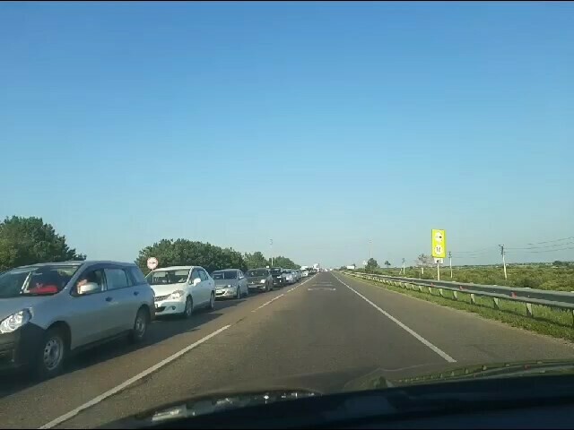 Судя по всему, длина затора приближается к 6-8 километрам.
