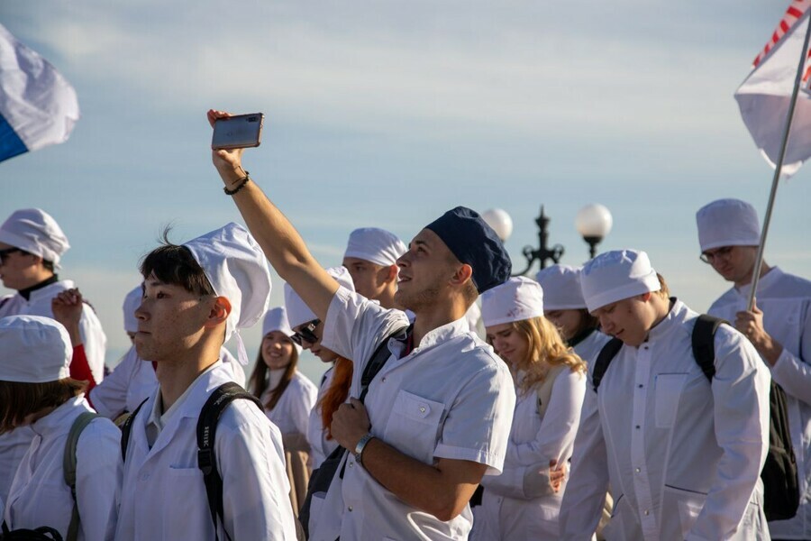 Фото: Telegram-канал Имамеев LIVE По Благовещенску прошли более тысячи первокурсников.