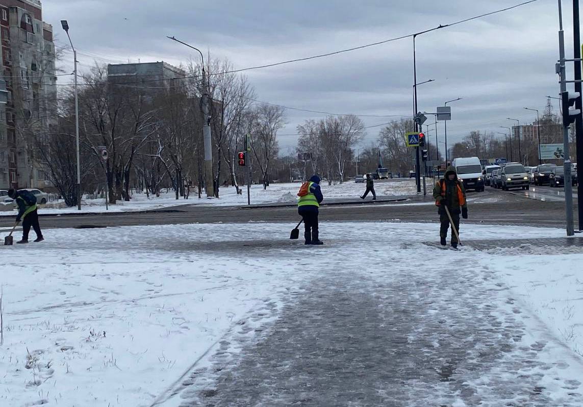 Благовещенск: Сотрудники ГСТК активно очищают улицы города от наледи