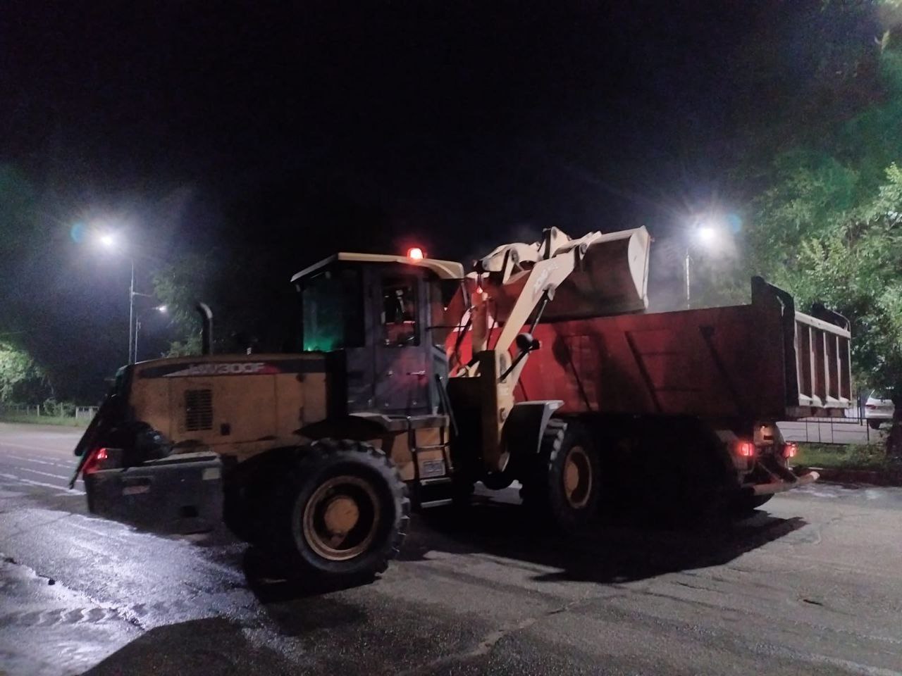 Ночью 8 дорожных рабочих и 11 единиц техники очистили прилотковую часть на Октябрьской от Кузнечной до Политехнической (по четной стороне) и на Октябрьской от Политехнической до Трудовой (по нечетной).