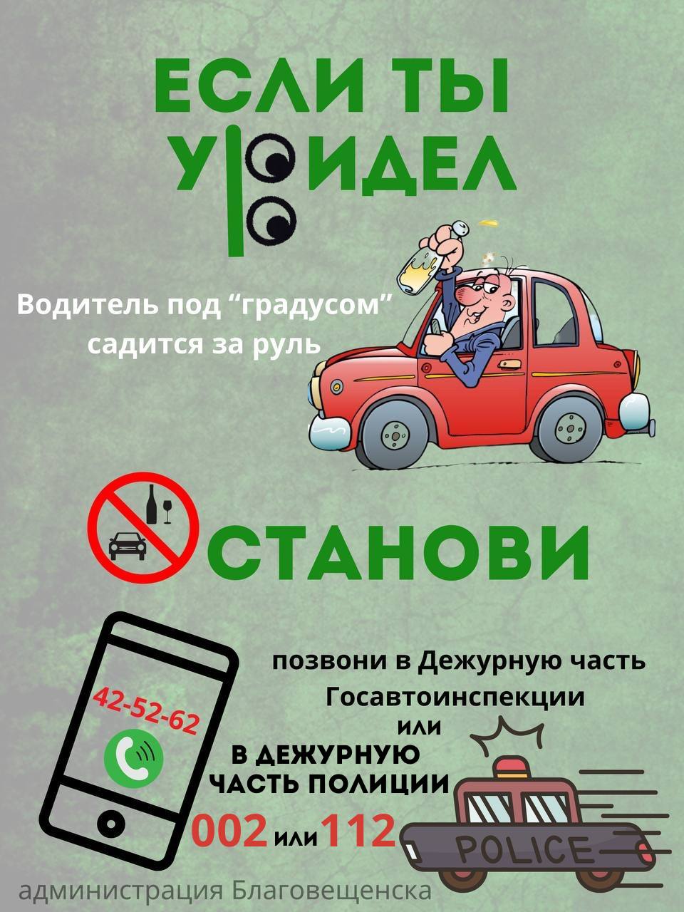 Жители амурской столицы решили активно бороться с пьянством за рулем. За две недели правоохранителям сообщили о пяти нетрезвых водителях, три из которых благовещенца.