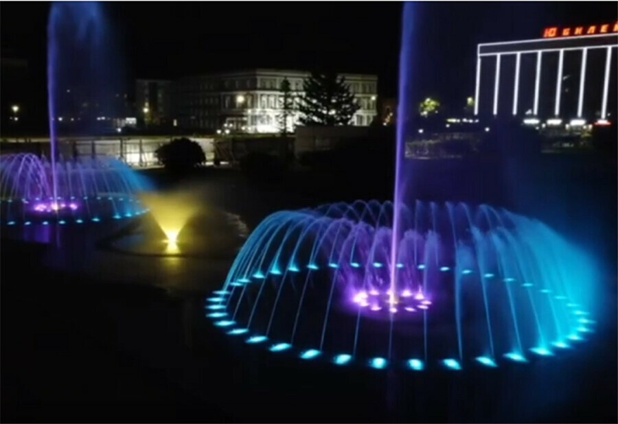 Невероятной красоты фонтан сняли ночью на видео в Благовещенске