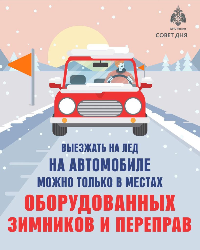 соблюдайте меры личной безопасности на льду, передвигайтесь только по оборудованным ледовым переправам; выезжать на лёд нужно медленно, без толчков и торможений; не допускайте нагрузки, превышающей требования информационных знаков по допустимой грузоподъемности; перемещение транспортных средств при плохой видимости (туман или пурга) по водоемам крайне опасно.В случае возникновения любой экстренной ситуации звоните на единый номер вызова экстренных служб «112», телефон пожарно-спасательной службы «101»