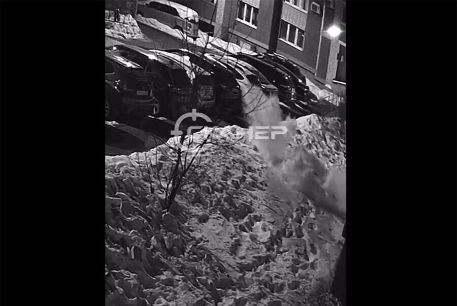 На кадрах запечатлено, как тело падает в снег.