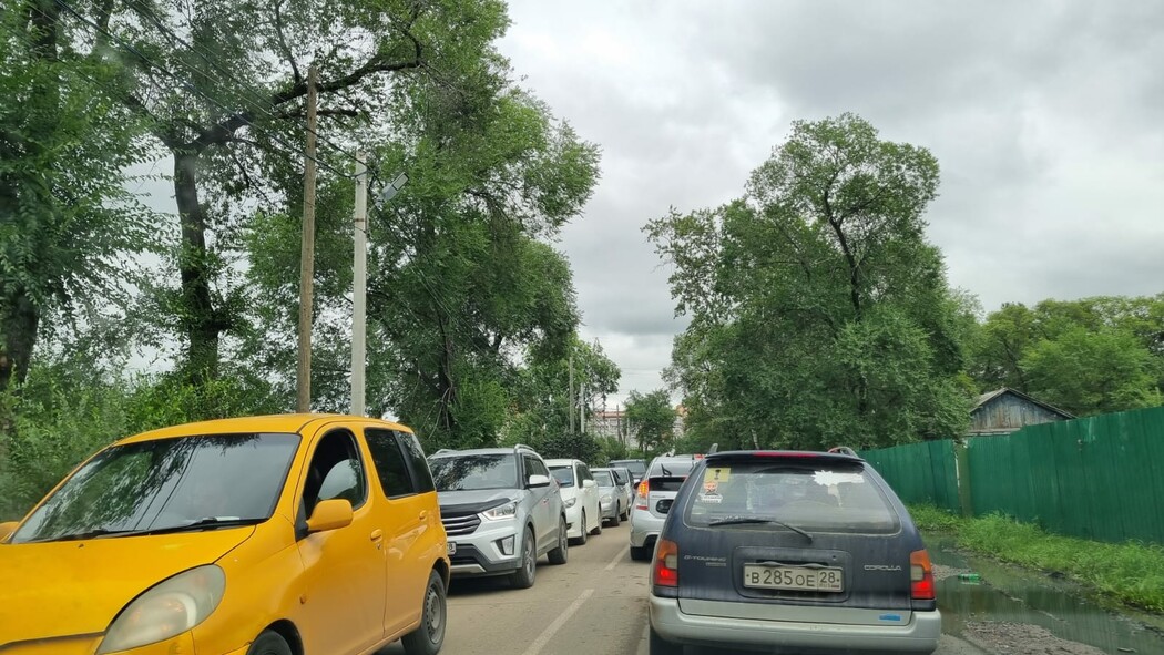 Жители Благовещенска встали в пробку по улице Заводской в попытках прорваться на набережную реки Зеи.