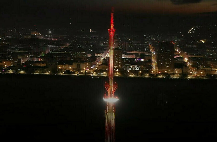 Фото: скриншот видео Праздничная световая надпись появится на главной телебашне Приамурья 23 февраля.